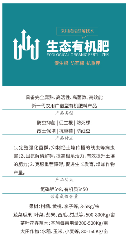 营养元素全面,作用持久 焦点娱乐源有机肥容易腐熟、肥效相对较快,是一种比较均衡的优质完全肥料;营养元素全面,氮、 磷、钾等营养元素和微量元素总含量一般可超过12%;在土壤有益微生物和有机胶体的作用 下,可使施用的各种肥料利用率提高、作用持久。